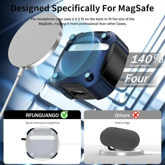 [Suitable for MagSafe]: the rounded design on the back fits MagSafe better, plus the powerful magnet makes charging your Airpods easier, for the places where the magnet can be applied you can place your headphones as you like.