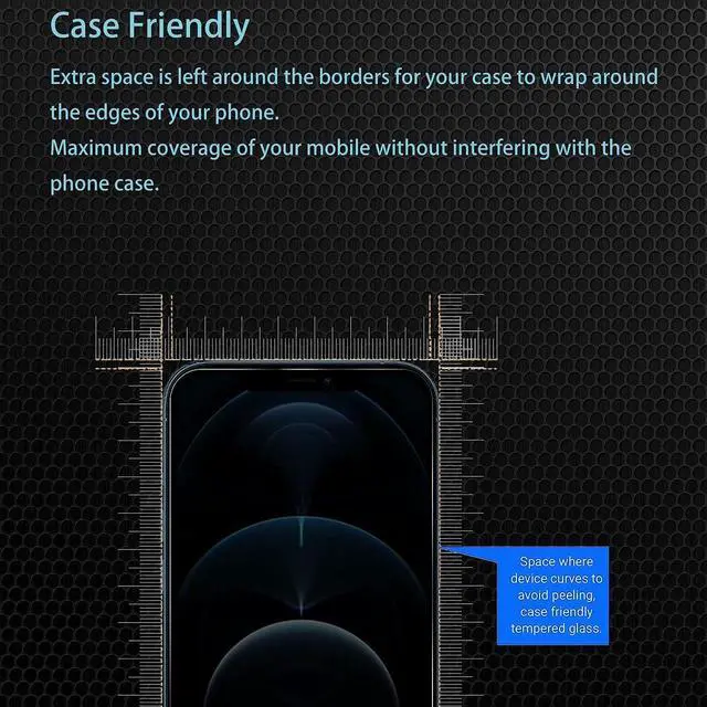 [Case Friendly] The slightly narrow design of screen protector to avoid warpage and bubbles. The screen protector and the case do not interfere with each other, it is compatible with most cases.