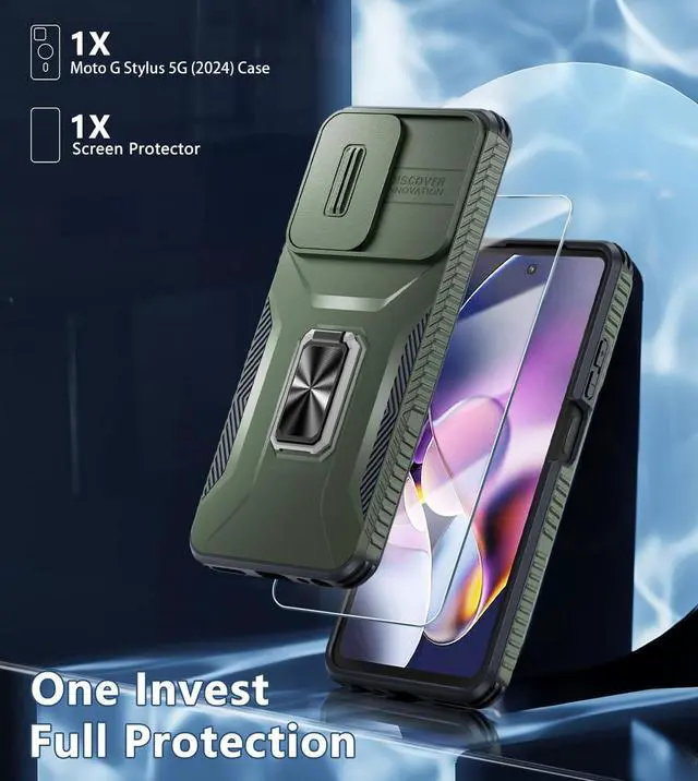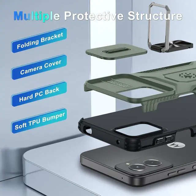 360° Rotating Kickstand RingBuilt-in 360° premium metal rotating kickstand ring for Moto G Power 5G 2024 case with camera cover, it offers multiple adjustable angles to watch videos, play games or online chatting. You can also thread your finger through the ring to prevent it from falling and make it easier to carry.