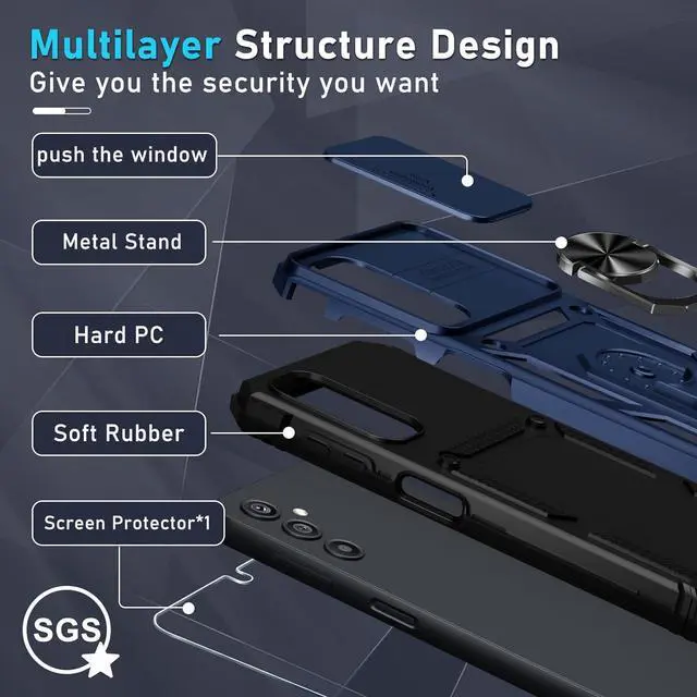 Durable and Delicate Phone CaseJanmitta protective case built-in sliding camera lens cover for Samsung Galaxy A25 5G, 2024. Not applicable to other models. **Note: Wireless charging is not supported. **