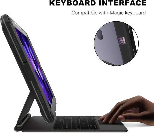 Design Details-Special designed magnetic pencil holder and keyboard interface for iPad Air 5&4 universal case, which supports pen charging and linking external keyboard. With safety lanyard, adjustable kickstand and 360-degree rotatable ring