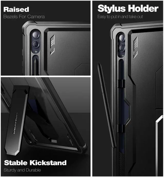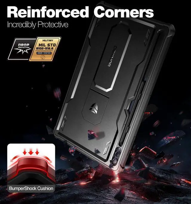 This Galaxy Tab S10 Ultra/ S9 Ultra/ S8 Ultra case has a built-in screen protector to protect the screen from scratches. Pen holder and pop out kickstand allow you to easily view video, movies and games on the go. The impact-resistant TPU and bumper PC chassis provide the best protection for your equipment. It is the guardian of your daily life, entertainment and learning