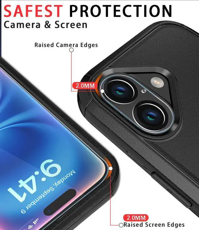 for iPhone 16 Case [Shockproof] [Dropproof] [Tempered Glass Screen Protector + Camera Protectors] Heavy Duty Protection Phone Case Cover for Apple iPhone 16 (Black)