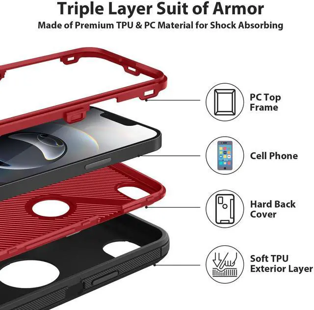 for iPhone 16e Case, for iPhone 17e Case Heavy Duty Shockproof Rugged Screenless, Dual Layer Dust Proof Protective, Cell Phone Cover for iPhone 16 e / 17 e 6.1'' Men Women Teen Black Red