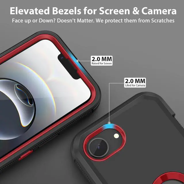 for iPhone 16e Case, for iPhone 17e Case Heavy Duty Shockproof Rugged Screenless, Dual Layer Dust Proof Protective, Cell Phone Cover for iPhone 16 e / 17 e 6.1 '' Men Women Teen Black Red