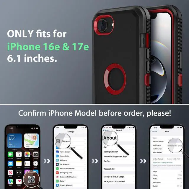 Perfect Fit: Jiunai Armor Case is ONLY designed for iPhone 16e 2025 & for iPhone 17e 2026 6.1 inches. Confirm the phone model from Settings - General - About - Model Name: iPhone 16e/17e before order