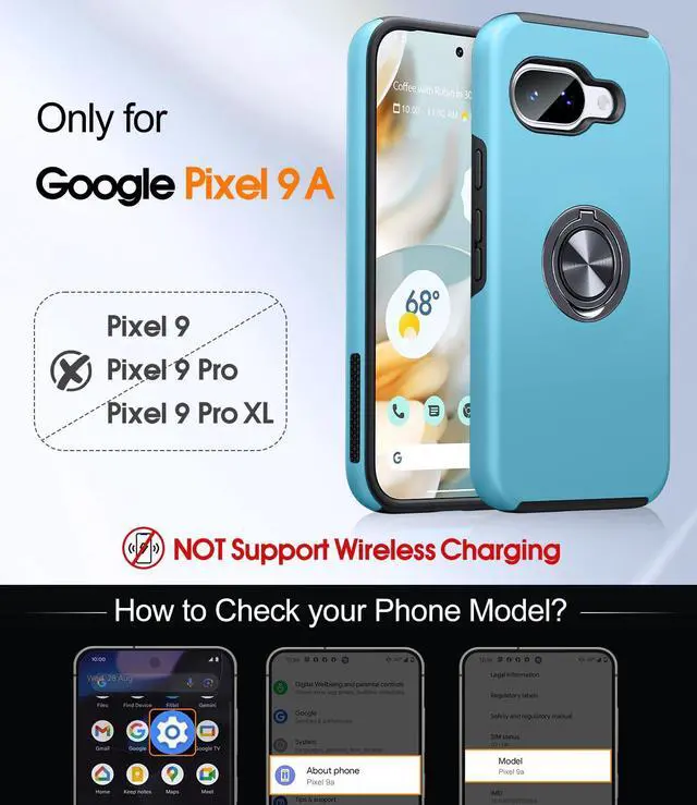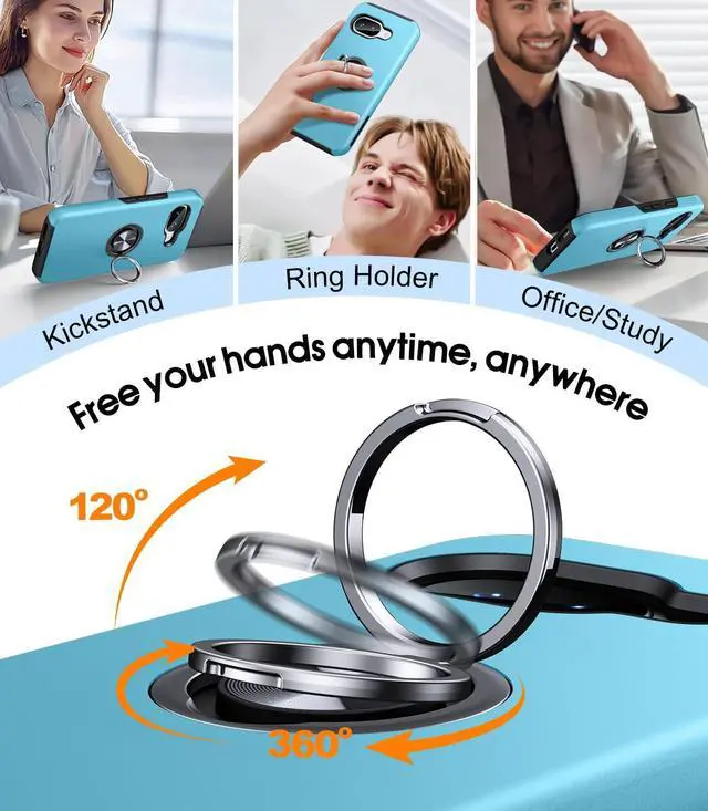 • 360° Rotating Ring Stand: Pixel 9a case has a invisible holder, that can be rotated 360° & folded 100° to meet the visibility needs of any position. Pixel 9a phone cover can be attached to the magnetic car mount (magnetic car mount not included)