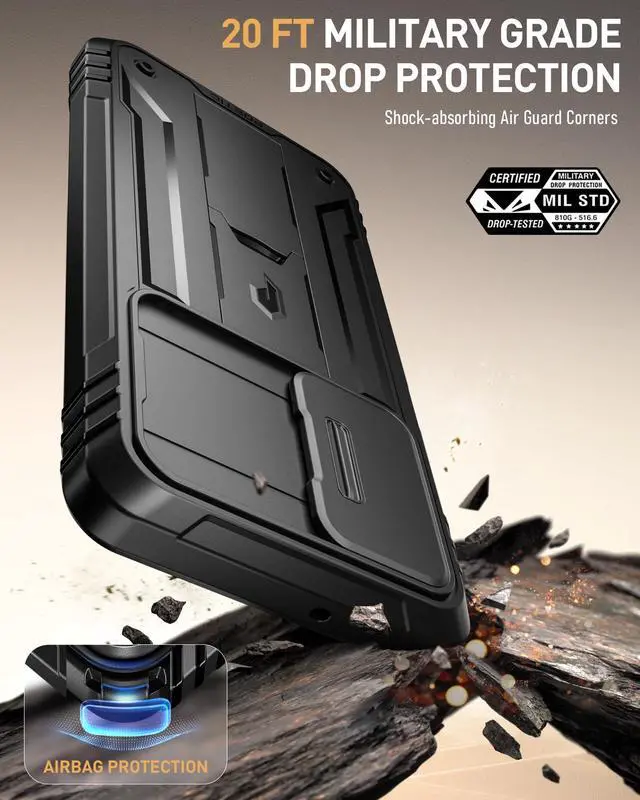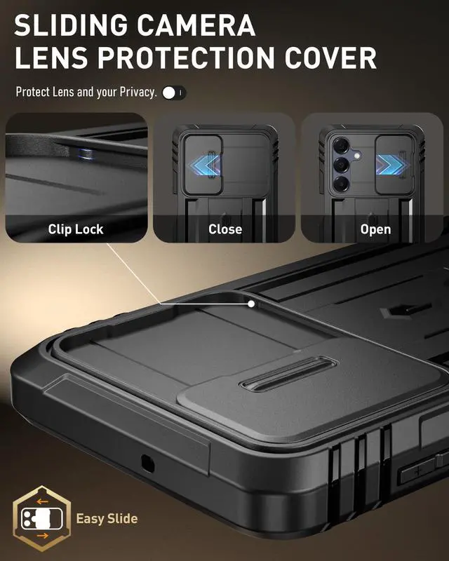 Revolution Case for Samsung Galaxy A17 / A16 5G, [Slide Camera Cover], [20FT Mil-Grade Drop Tested], Full-Body Rugged Shockproof Cover with Kickstand and Built-in-Screen Protector, Black