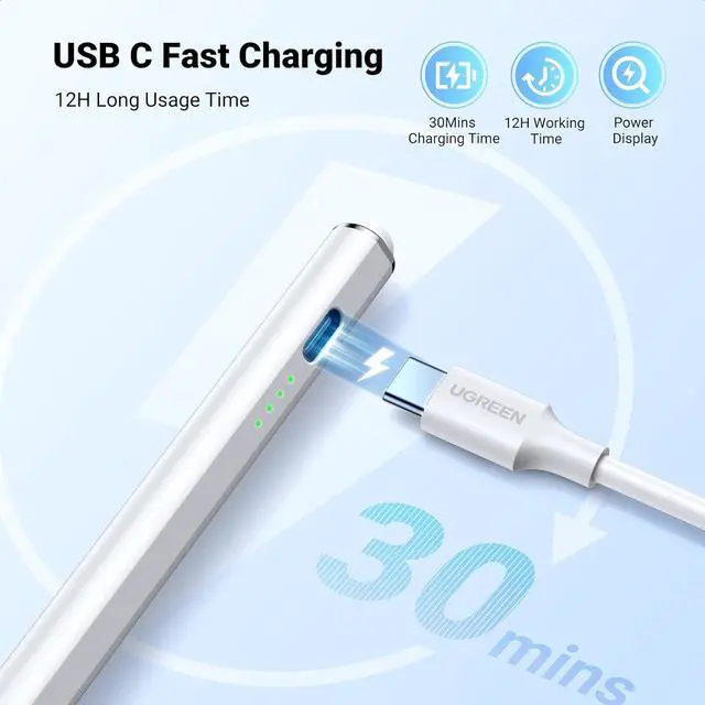 30 Minute Flash Full Charging: This stylus pen for iPad 1st generation with USB C port offers ultra fast charging speed, now taking only 30 minutes compared to the previous 1.5 hours. Enjoy an extended continuous use time of up to 12 hours for uninterrupted note taking, doodling, and drawing sessions. Say goodbye to battery anxiety with 4 power indicators for clear battery level visibility