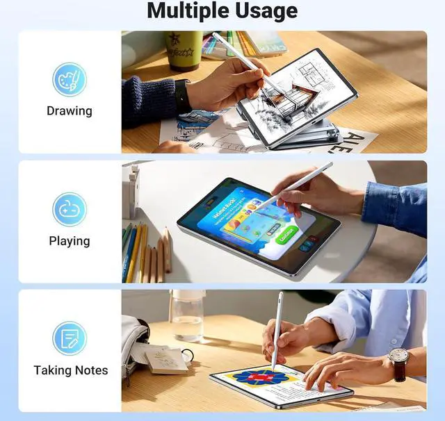 Full Screen with Palm Rejection: The stylus pencil for iPad features built in high precision sensor for automatic Palm Rejection, reducing accidental Screen touches while doodling on iPad, especially useful for preventing children from interfering