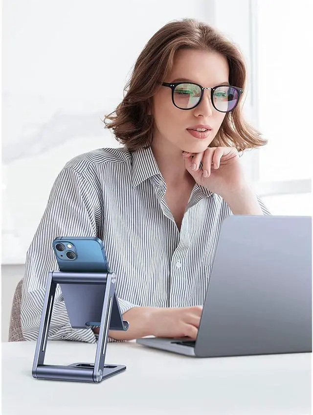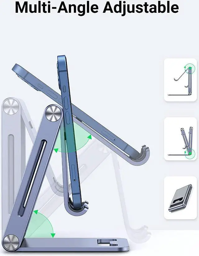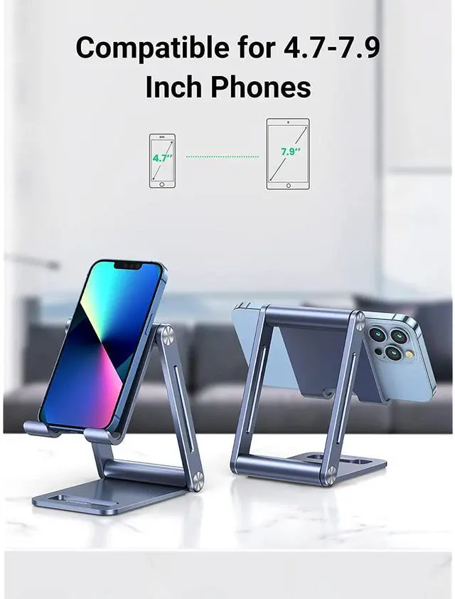 Ugreen Cell Phone Stand Desk Adjustable Aluminum Mobile Phone Holder Compatible For Iphone 13 12 Pro Max, Iphone 11 X Se Xs Xr 8 Plus 6 7 6S Samsung Galaxy Note20 S20 S10 S9 S8 S7 Smartphone Blue