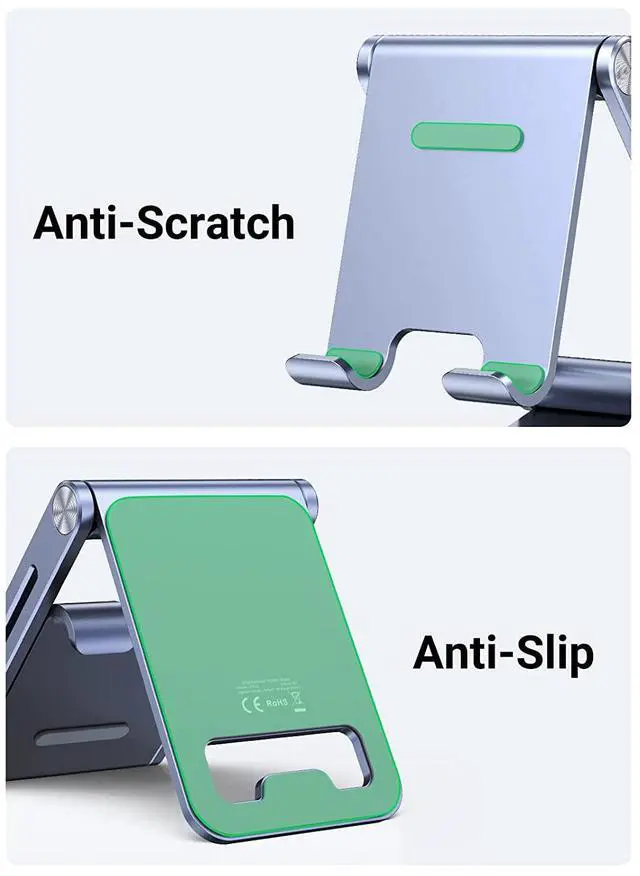 - Choose Preferred Viewing Angle: With Multi-Angle Adjustable, This Desk Cellphone Stand Allows You To Simply Adjust And Choose Comfortable Angles. Two Rotation Axes Of This Aluminum Phone Stand Achieve The Height Fine-Adjustment To Some Extent, Thus Keeping An Excellent Sight View And Relieving Your Neck Pain.