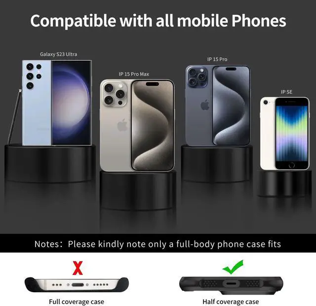 Compatible for most smartphones with a full coverage case, and keep your phone in safe condition and easy using. the thin pad could support corded and wireless charging without being removed, without blocking the charging port, lock button or camera.
