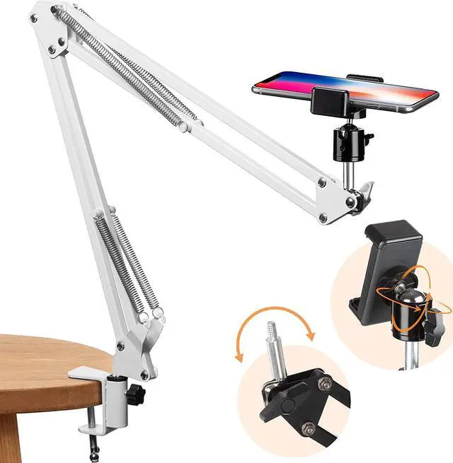 Simple & Versatile The TARION articulating desk arm for phones is simple to set up, does not take up much space, and has a sizable load capacity as well. The maximum load-bearing capacity is 1.23 lb (560g). A perfect and mush-have selfie table stand for creating overhead videos / filming, live streams, video conferences or watching films, the articulated arm keeps your hands free. It can also document the process of your creation, such as Speed drawing or cooking etc.