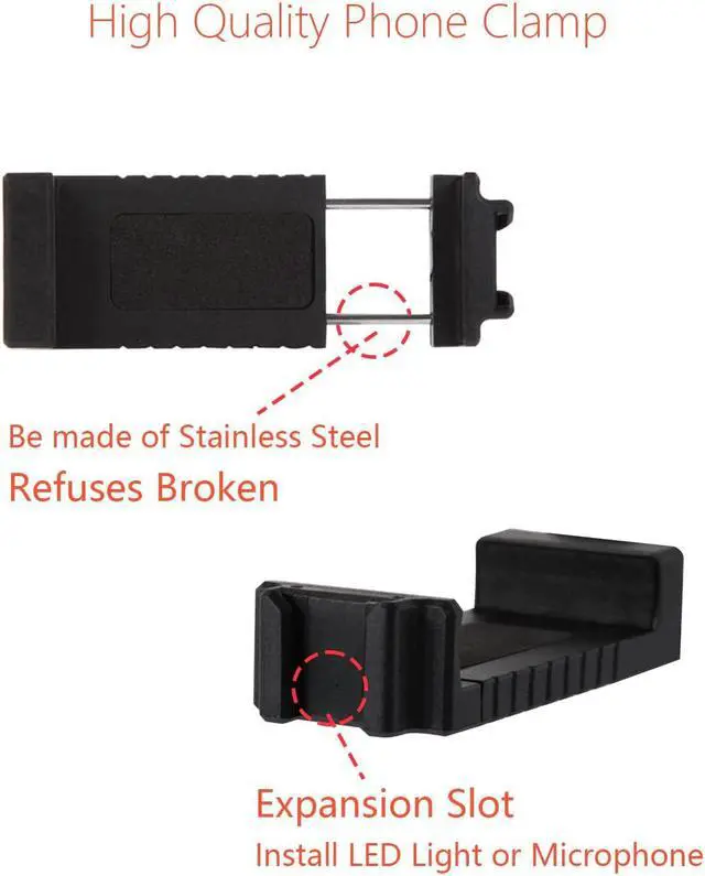 Excellent designTripod for iphone is made with High-quality solid aluminum alloy structure, The trapezoidal support base can provide stable and reliable support. High quality phone clamp telescopic rods are made of stainless stell, refuses broken
