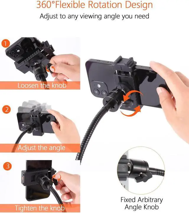 Flexible shooting angle: The head, gooseneck and the base are flexible, 1/4 head ball with 360 degree rotation provides your different angles as your wish to meet your different application scenarios like video recording, live streaming, baking, scanner