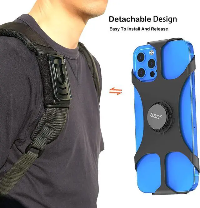 4. backpack phone mount, Phone Holder For Backpack Strap is velcro design, simple structure, easy and convenient to install and release. Easy and quick to install your phone on your backpack, Detachable Desgin, 360 degree rotate. let you go hands free. Perfect for traveling light, Backpack Attachment for Hikers, or outdoor hiking bag Attachment or anyone who wants easy access to their cell phone.