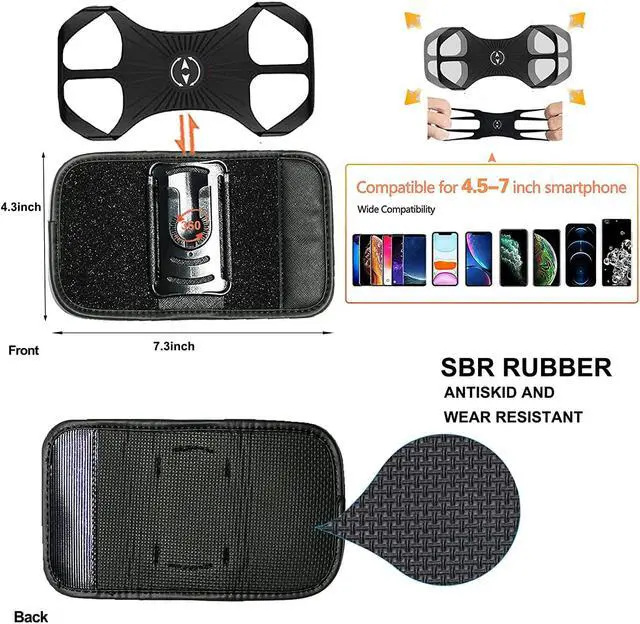1. This Phone mount for backpack strap fits all 4.5 -7 inch smartphones including iPhone 13 Pro Max, 13 Pro, 13, 13 Mini, 12 Pro Max, 11 Pro, SE, Xs Max, XS, XR, X, 8, 7 Plus, 6, etc.