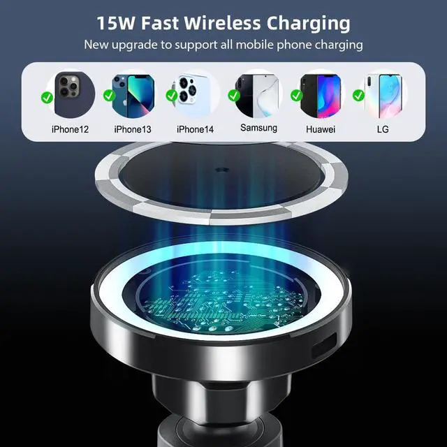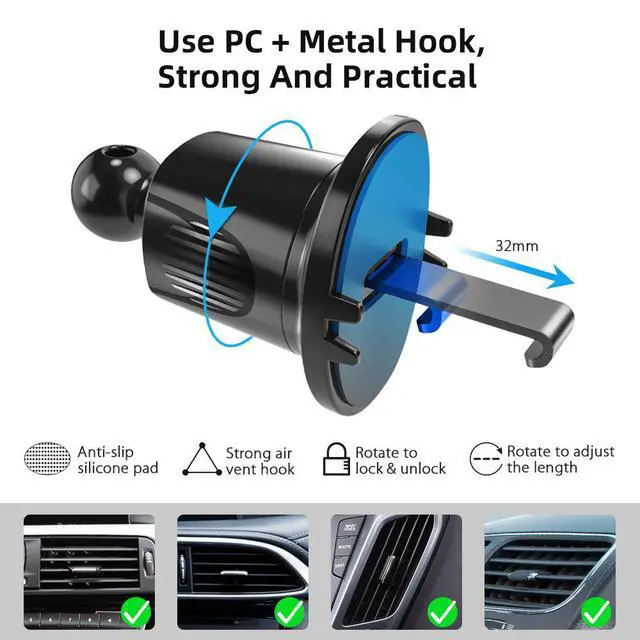 Air Vent Mount: Installs easily on car air vents for convenient charging.