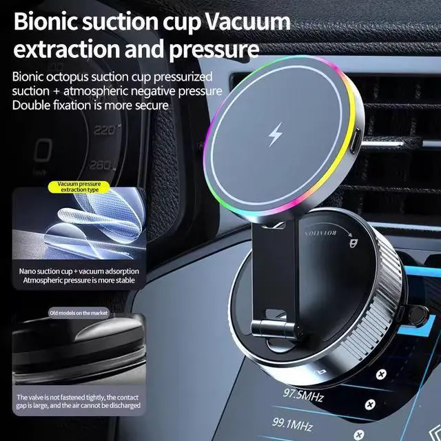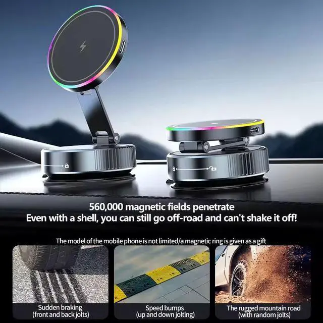 Vacuum magnetic wireless chargingStrong adhesion| Stable and non-damagingto the vehicle| Multi-angle rotation