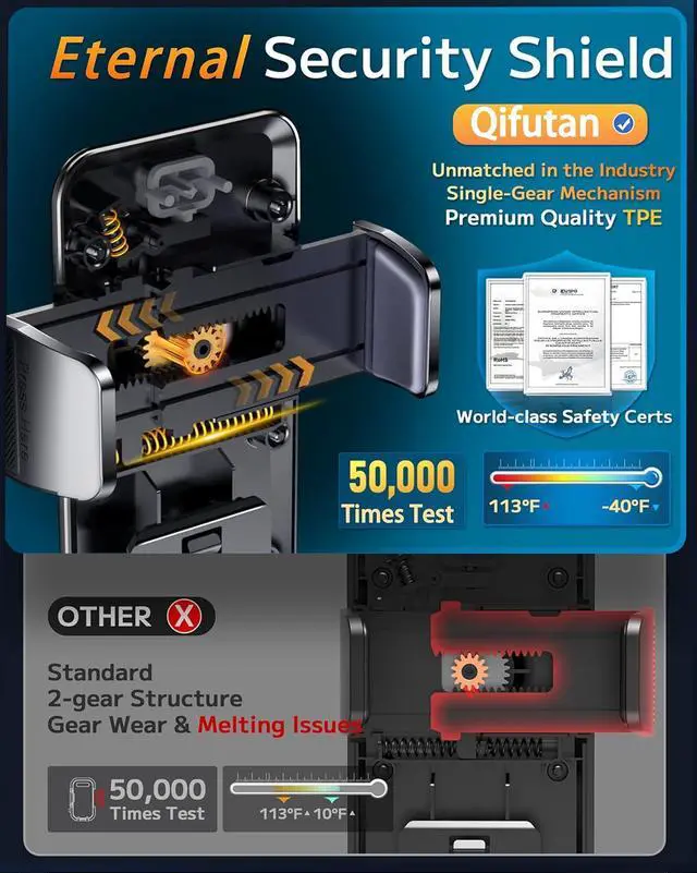 Strong Suction Performance: Car phone holder comes with a double-locked suction cup made of heat-resistant TPU material guaranteeing it stays firmly attached to your dashboard even in extreme heat. Reactivate its sticky power by washing with water and air-drying.
