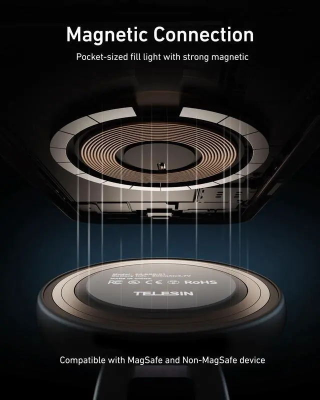 TELESIN Magnetic Phone Selfie Light Compatible with iPhone Magsafe, CRI97 360° LED Selfie Ring Fill Light with Mirror for Selfies/Photography/TikTok/Zoom Calls/Video Conference (White)