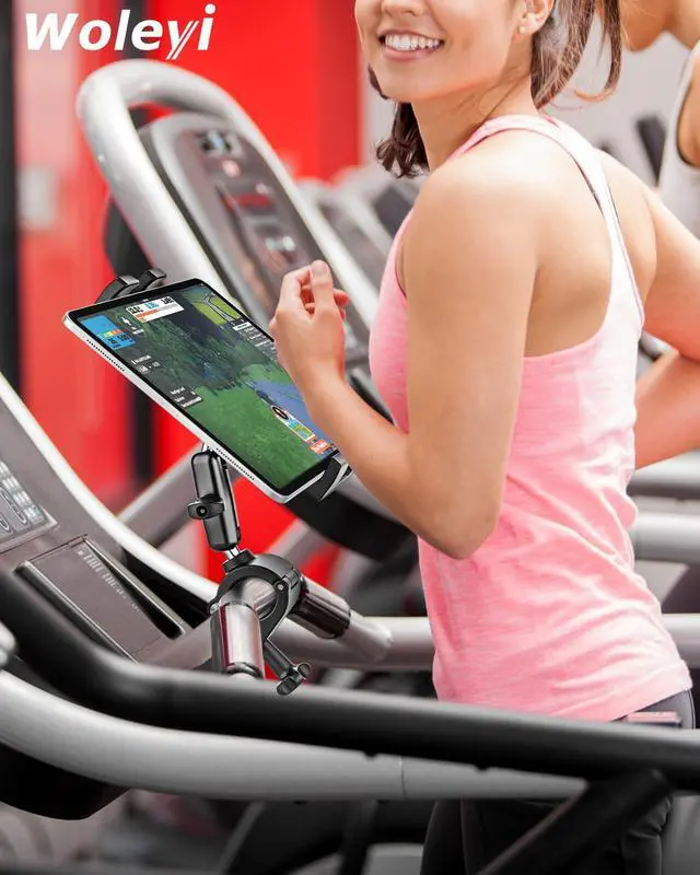 Tablet Holder Mount for Treadmill/Peloton/Spin Bike/Exercise Bicycle/Stroller/Stationary Indoor Bike/Elliptical/Handlebar Clamp, for 4.7-13" iPad Pro/Air/Mini/Galaxy Tab/Fire HD/iPhone/E-Book