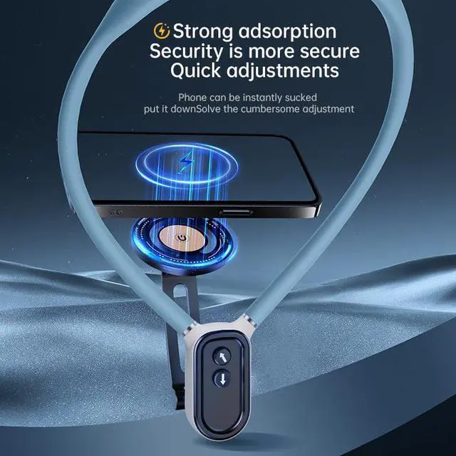 Featuring a robust all-metal hinge, the Magnetic Neck Holder guarantees a secure connection to your devices. The soft, skin-friendly silicone covering provides enhanced comfort during extended use, with a neck strap that extends to a generous 24 inches (60cm) when fully stretched.