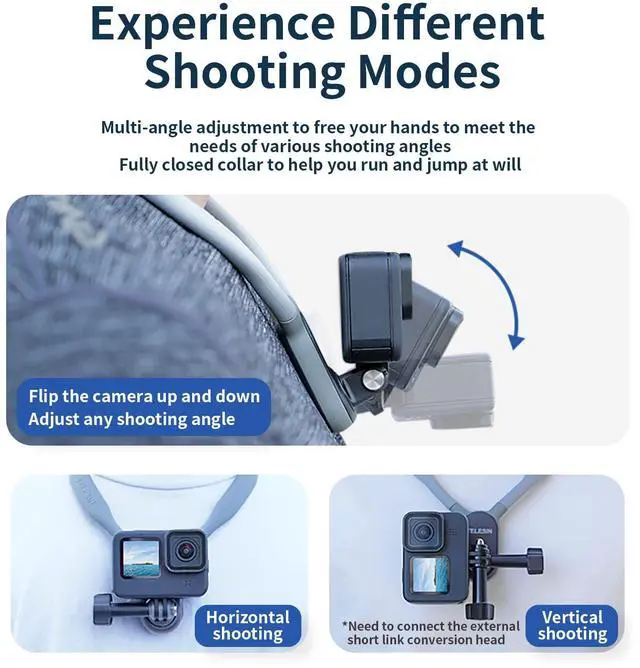 Designed for POV and VLOG shooting, a best video recording accessory. You can use it while outdoor climbing, cycling, riding (instead of using a motorcycle helmet chin mount) hiking, skiing, diving (instead of using a mouth mount or wrist strap), shopping, lure fishing etc., and for indoor cooking, gatherings, party, playing with pet, stay with baby recording etc.