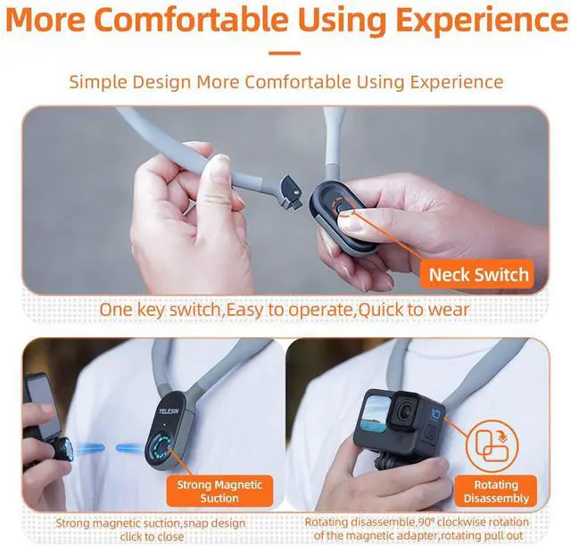 AFAITH Upgraded Max Neck Mount for GoPro Phone, First Person POV Vlog Magnetic Bendable Selfie Necklace Lanyard Holder Strap Mount for Go Pro Max Hero 13 12 11 10 9 8 7 DJI Osmo Action Insta360 Smartphone