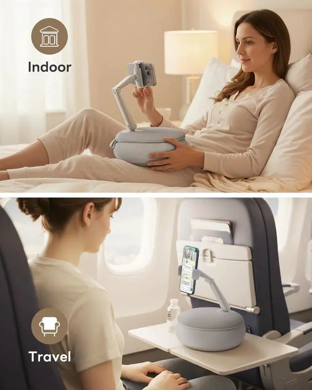 SAIJI pillow phone holder for watching video on bed/sofa/lap,without wobble when tapping the screen.This product weighs only 1.37lbs,can be comfortable placed on your lap for extended periods of time.