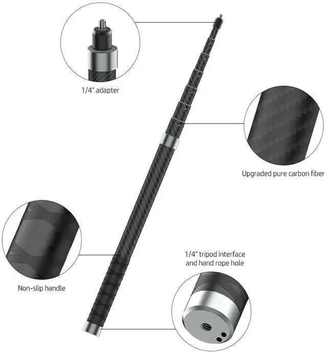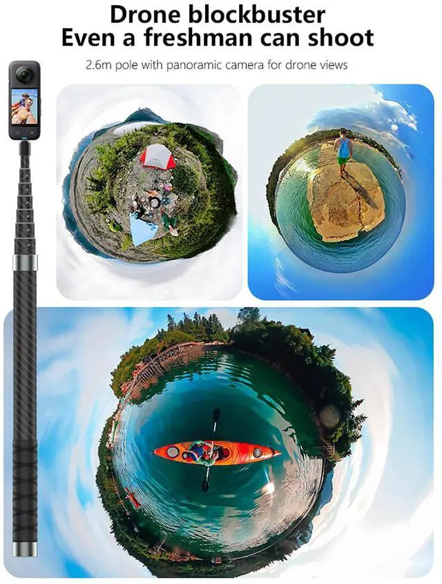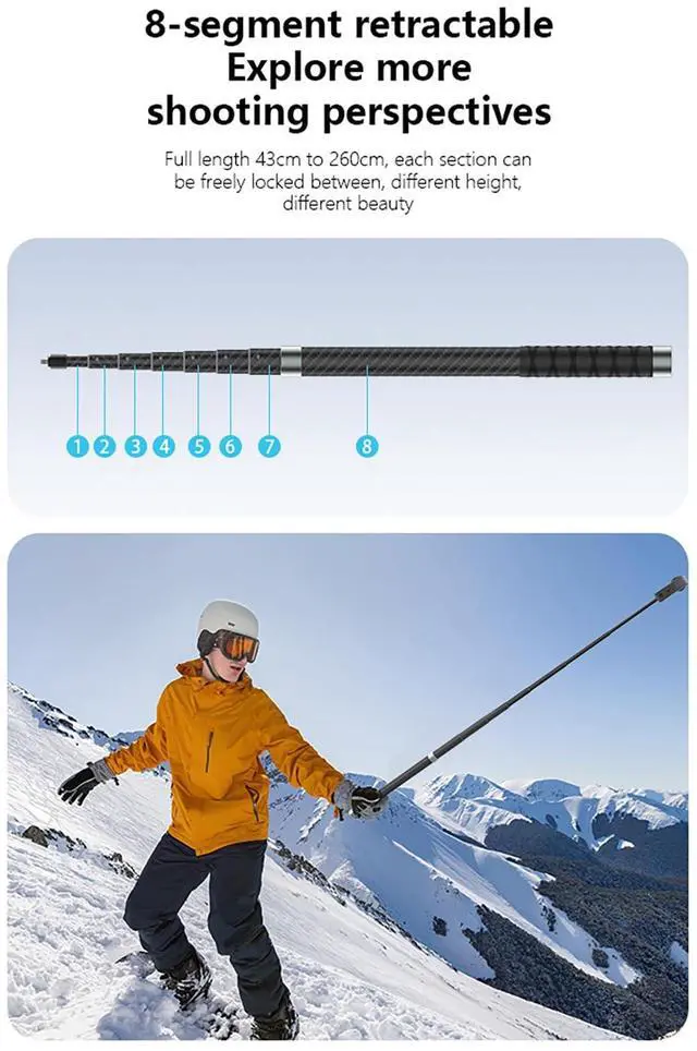 NEOSOU 2.6M/102-inch Invisible Selfie Stick, Carbon Fiber Long Pole Extension Rod for Insta360 X5 X4 X3 DJI Osmo 360 Nano, Lightweight/Waterproof/Extendable/Telescopic for 360 Camera Accessories