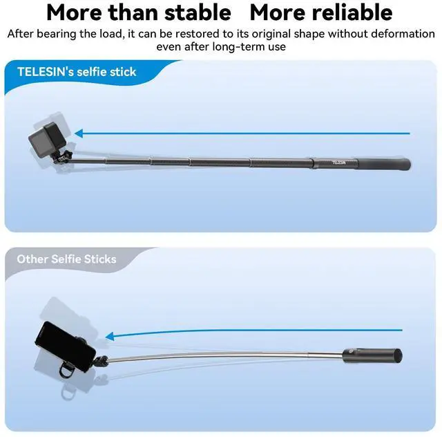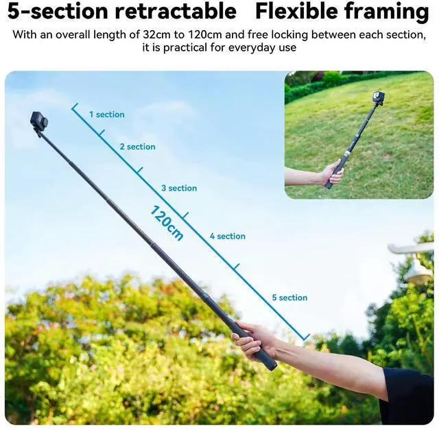 TELESIN WATERPROOF LIGHTWEIGHT CARBON FIBER EXTENSIONS SPORTS & ACTION CAMERA SELFEI POLE MONOPOD