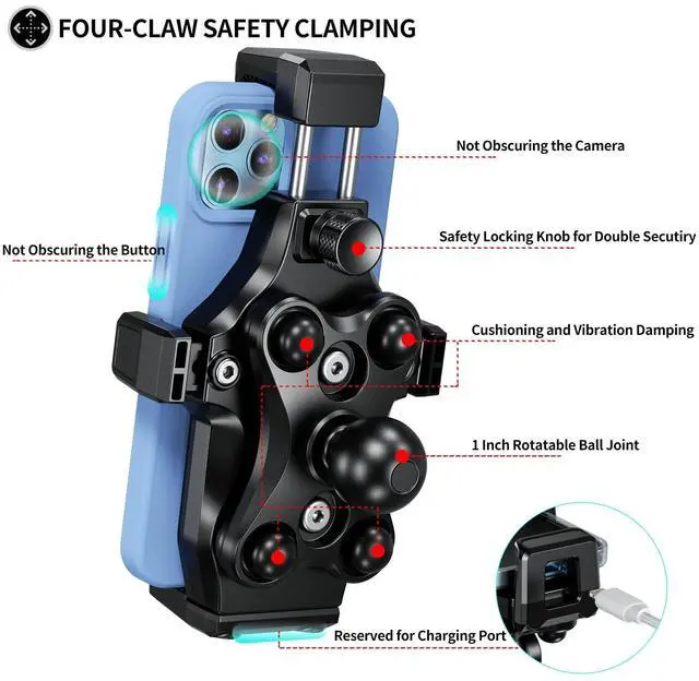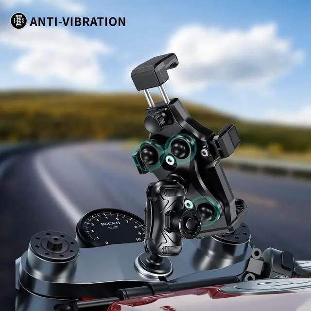 This anti-vibration, anti-theft motorcycle phone mount is installed on the fork stem of the motorcycle and provides a secure and stable platform for your phone. It ensures that you can easily access your phone's GPS, music, and other important features while riding, without worrying about your phone falling off.
