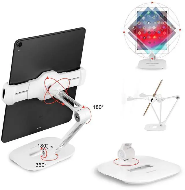 SHOPPINGALL Adjustable Tablet Stand, Swivel Desk Mount Holder for Any Tablet or Smartphone Between 4.7"-12.9" inches, Compatible with: Nintendo Switch/Samsung Galaxy/iPhone/iPad Mini and More - SA-205D