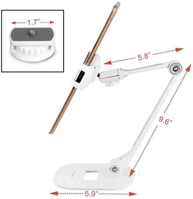 Works as a tablet stand for desktop or a mobile device stand for cellphones, along with many other uses. Adjustable tightness of the arm base with an included hex wrench delivers unparalleled stability as a docking station. Great for turning iPads and other devices into interactive displays