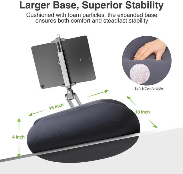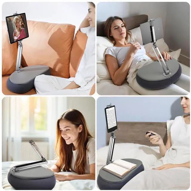 - [Versatile Pillow Holder] Experience ultimate comfort with our kindle stand for reading in bed. Whether sitting, lying down, or on your stomach, this iPad pillow stand adapts seamlessly to any position. Place it on your lap, rest it beside you in bed, or adjust it to the perfect angle while leaning on the sofa. No matter the position, this kindle pillow stand offers the best viewing angle and comfort, making it perfect for every scenario and a must-have for home use.