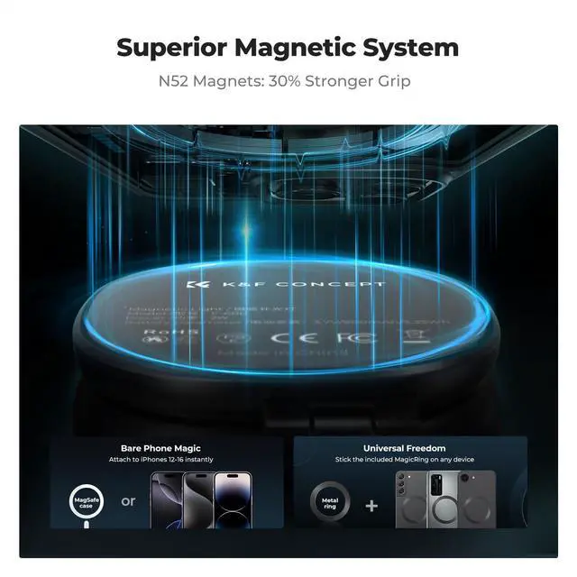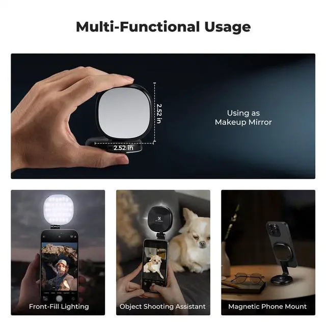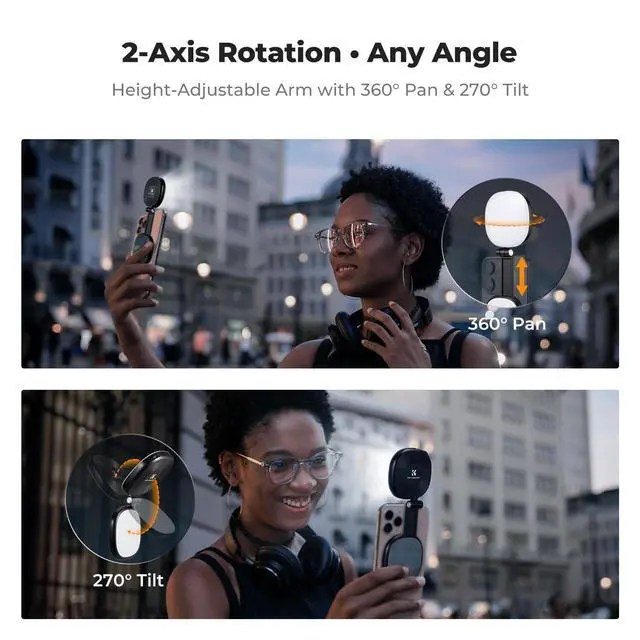 Achieve professional lighting anywhere with this Magnetic Selfie Light. Its strong N52 magnets and included metal ring offer instant attachment to most smartphones. The 360° rotating head and extendable rod provide perfect angles without blocking cameras. Foldable and ultra-portable, it fits in any pocket and features a built-in mirror for quick adjustments. With 48 CRI95+ LEDs, stepless slide control, and a long-lasting 900mAh battery, it's perfect for selfies, videos, and video calls.