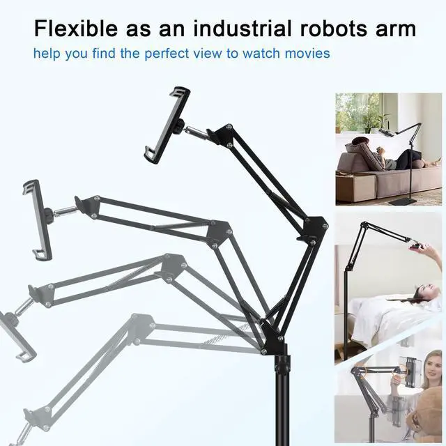 This ergonomic robots arm tablet holder suits most tablets and phones. you can easily get your desired angle to meet your needs at different angles and positions.