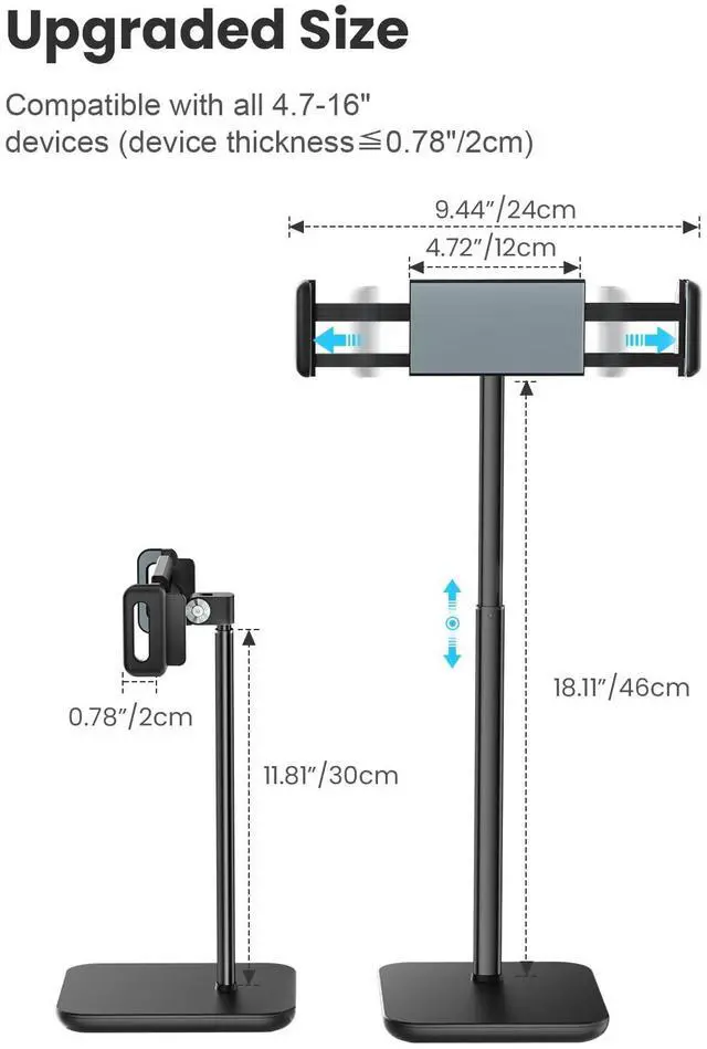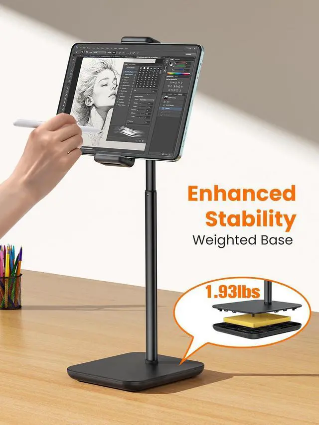 This height adjustable iPad Pro stand can raise your iPad up to 18.11", just pull up the rod to adjust.
