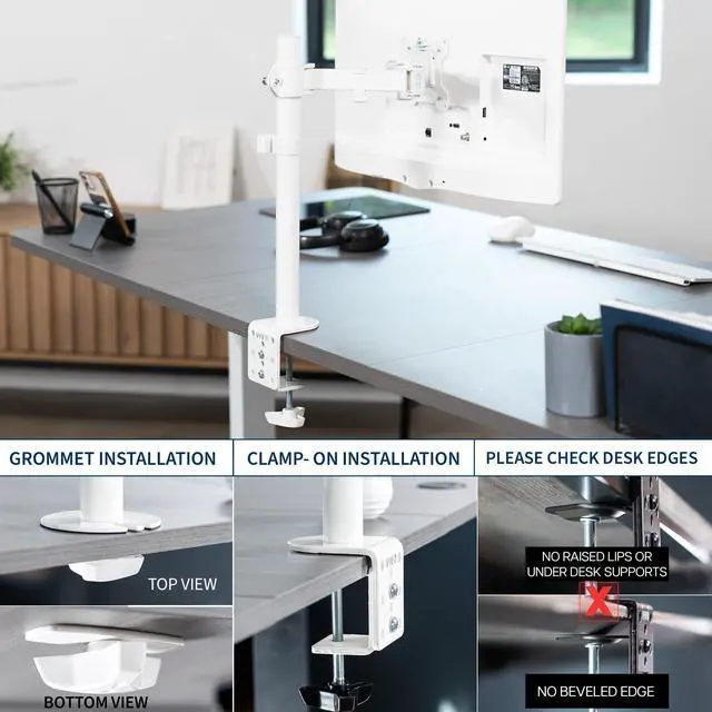 • Easy Installation - Mounting your monitor is a simple process with the detachable VESA plate, and we provide all the necessary hardware and instructions for easy assembly. The stand secures to your desk with a heavy-duty C-clamp or optional grommet.