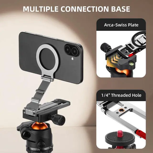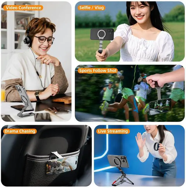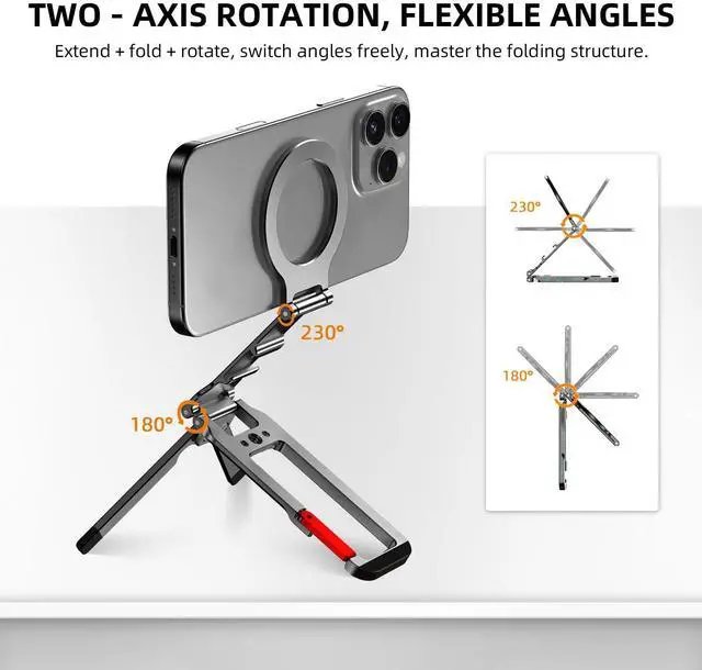 Ultra-portable (4.6", 185g) 4-in-1 magnetic selfie stick/tripod: for iPhone 17-12/MagSafe. Offers 360° rotation, 180°-225° tilt, non-slip stability, and 10m-range rechargeable Bluetooth remote.