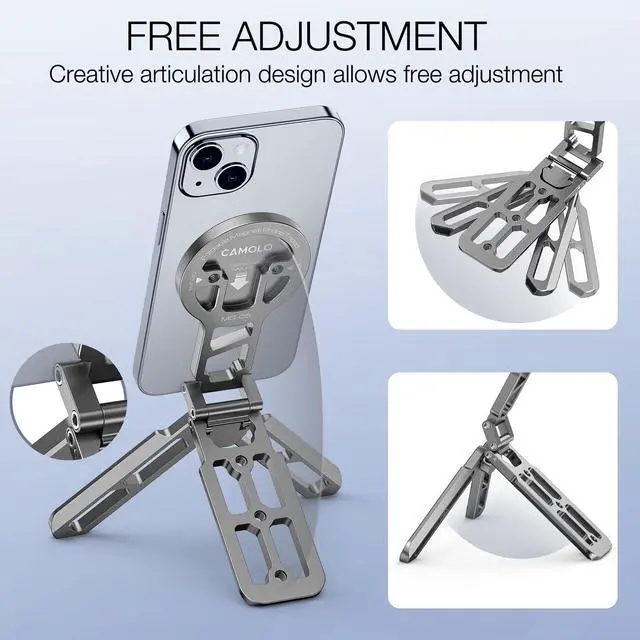 Steadfast Stability with Hidden Split Legs Our Foldable Pocket Tripod features three split legs (or transform into a stand base) dramatically boosting steady footage to eliminate unwanted blur. The powerful magnet ring with a 3 lbs holding force, paired with non slip rubber pad provides a secure and stable grip and prevents accidental falling off