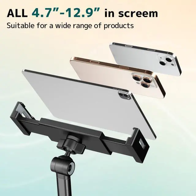 Ideal for iPads, tablets and smartphones such as iPhone and Huawei. This stand supports devices weighing up to 1 kg.