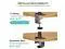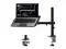 Merchant VideoSingle laptop computer mount fits one laptop or notebook up to 17” and supports weight up to 22lbs. The C-clamp is for 0.4”-4” thick desk and Grommet is for 0.4”-2.2” thick desk.