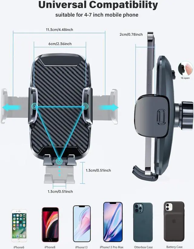 Wide compatibility: TSRYRLR car mount is compatible with 4 to 7 inch smartphones and Compatible with most cases on the market up to 13mm thick.