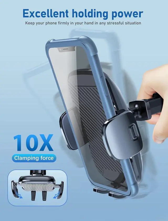Super Strong Suction Cup: the car holder uses a super viscous suction cup with vacuum lock. After several laboratory research tests, our suction cup can be used normally even at extreme temperatures, without melting or deforming, and the suction force is always stable, the special waterproof gel suction cup can be washed many times and reused after drying.