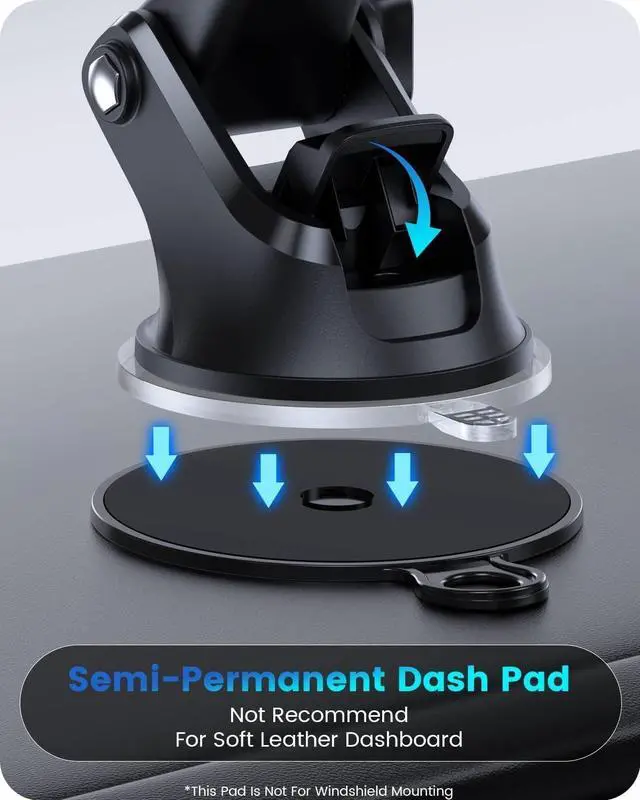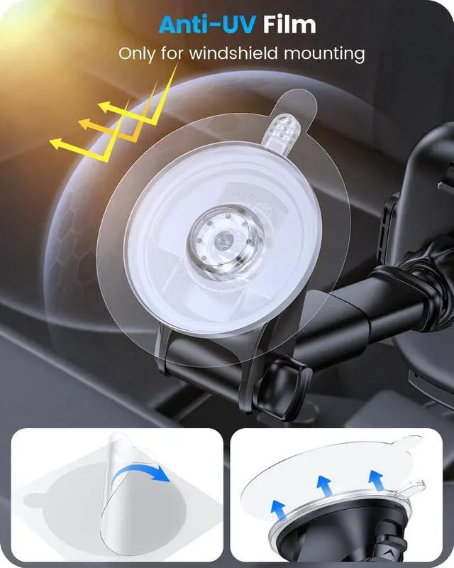 Enhanced Sticky Suction Cup: Keeping the phone steady while you drive is reusable gel pads that adhere to any flat or curved portion of your dashboard, and work well in hot and cold conditions. A strong suction cup securely locks on your windshield or dashboard to keep your smartphone safe and sound while you take calls and view navigation instructions.