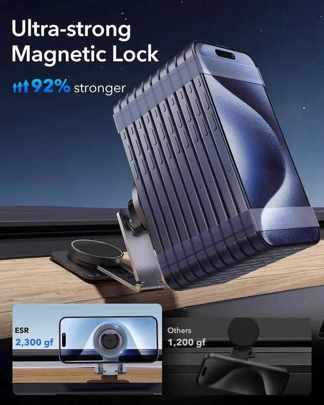 Strong Magnetic Lock: ultra-strong magnets with a holding force of 2, 300 g keep your phone securely in place, even over bumpy roads; compatible with iPhone 16e/16/15/14/13/12 series, and MagSafe-compatible phone cases; also compatible with non-MagSafe phones and phone cases using the included magnetic rings, such as iPhone 11/X/8 series, Samsung Galaxy S25 series