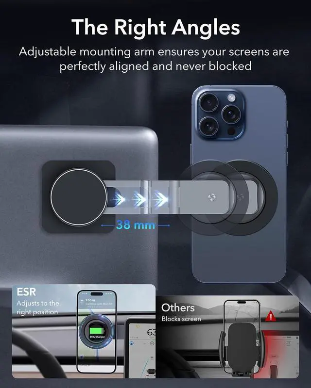 Mount Your Way: choose to mount on your car's dashboard or touchscreen; when it's on your touchscreen, the foldable design lets you hide the mount behind the screen when it's not in use; included touchscreen alignment guide for Tesla Model 3, Tesla Model Y, Tesla Model X (2023), and Tesla Model S (2023)